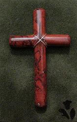 | I joined the San Diego Lapidary Society in 2002.  I find that every rock has a new picture in it, even when it's two slabs from the same rock. I started with your every day round and oval shapes and saw that the templates also had a cross on them. I asked about trying to do crosses and was told that it was one of the most difficult ones to do. Well, I had such a hard time with keeping the "round" round and the "oval" actually oval, so I thought for sure the crosses would never come out so beautiful. Surprise, surprise. I had so much fun just figuring out how to do all the grinding and sanding on the wheels, I just couldn't stop. Here are a few of the crosses that I have done in different rocks. My collection now exceeds 200 and is still growing. If you're interested in adding one of these to your own collection, please email me. |